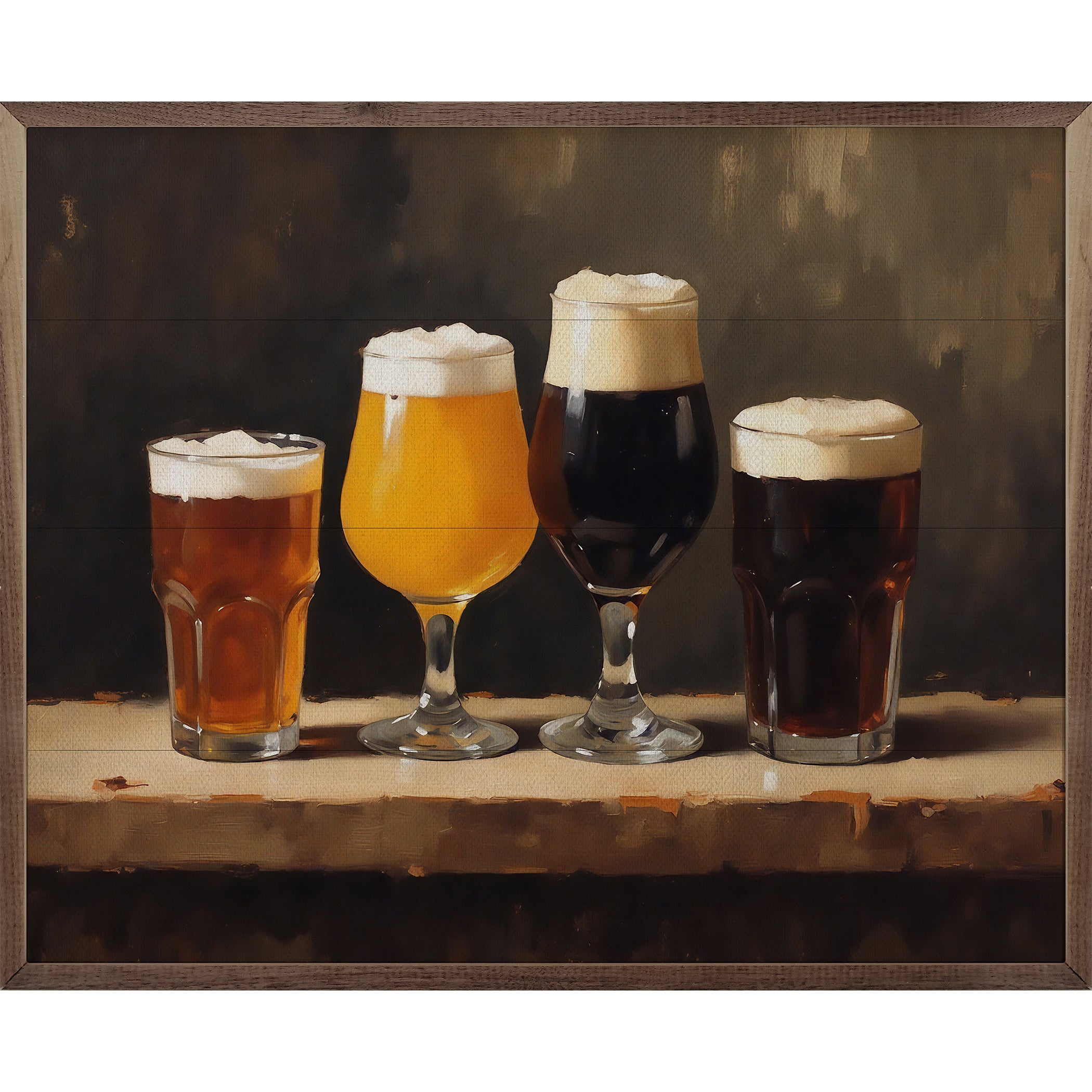 Featuring a solid wood insert with intricate designs inspired by bar culture, this piece is framed in rich walnut to showcase the natural wood grain. Its rugged craftsmanship and stylish appeal make it a perfect addition to any man cave or bar, offering timeless character and quality.