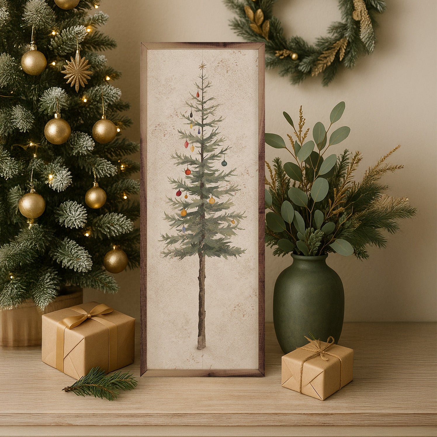 Celebrate the holiday season with our framed Christmas wall art, featuring festive designs in muted greens, deep reds, and classic holiday motifs. Each piece is beautifully framed in rich walnut, adding timeless, rustic charm to your decor. Perfect for bringing a cozy, cheerful touch to any room this Christmas.