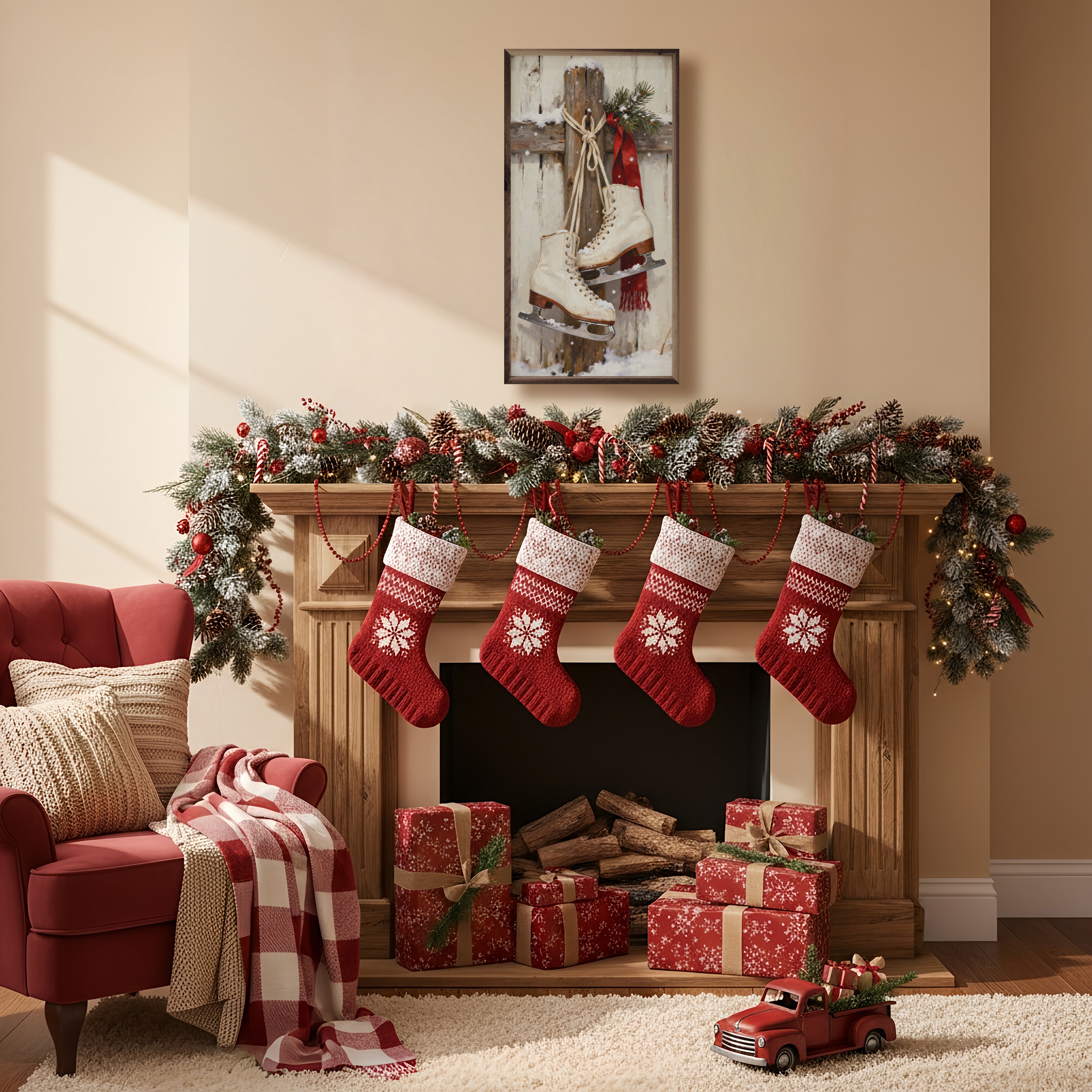 Celebrate the holiday season with our framed Christmas wall art, featuring festive designs in muted greens, deep reds, and classic holiday motifs. Each piece is beautifully framed in rich walnut, adding timeless, rustic charm to your décor. Perfect for bringing a cozy, cheerful touch to any room this Christmas.