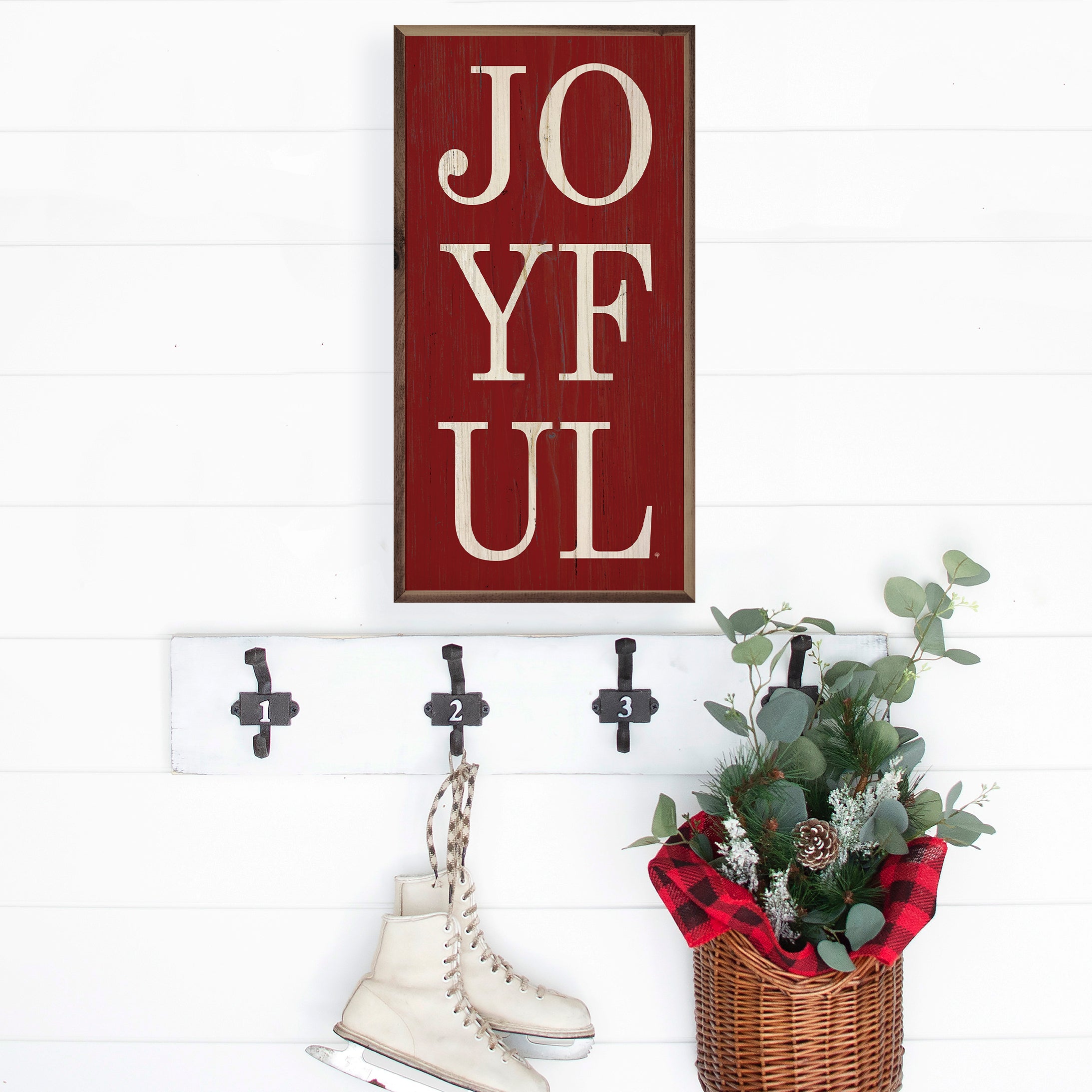 This unique piece is a simple way to bring beauty and charm to any wall or shelf within the home. It is made from high quality American hardwood planks with a hand painted face, and printed with UV cured ink, and is framed in a natural walnut frame. Each piece is unique with its own personality, marks, wood grain, and look. Easy to clean with a dry cloth.