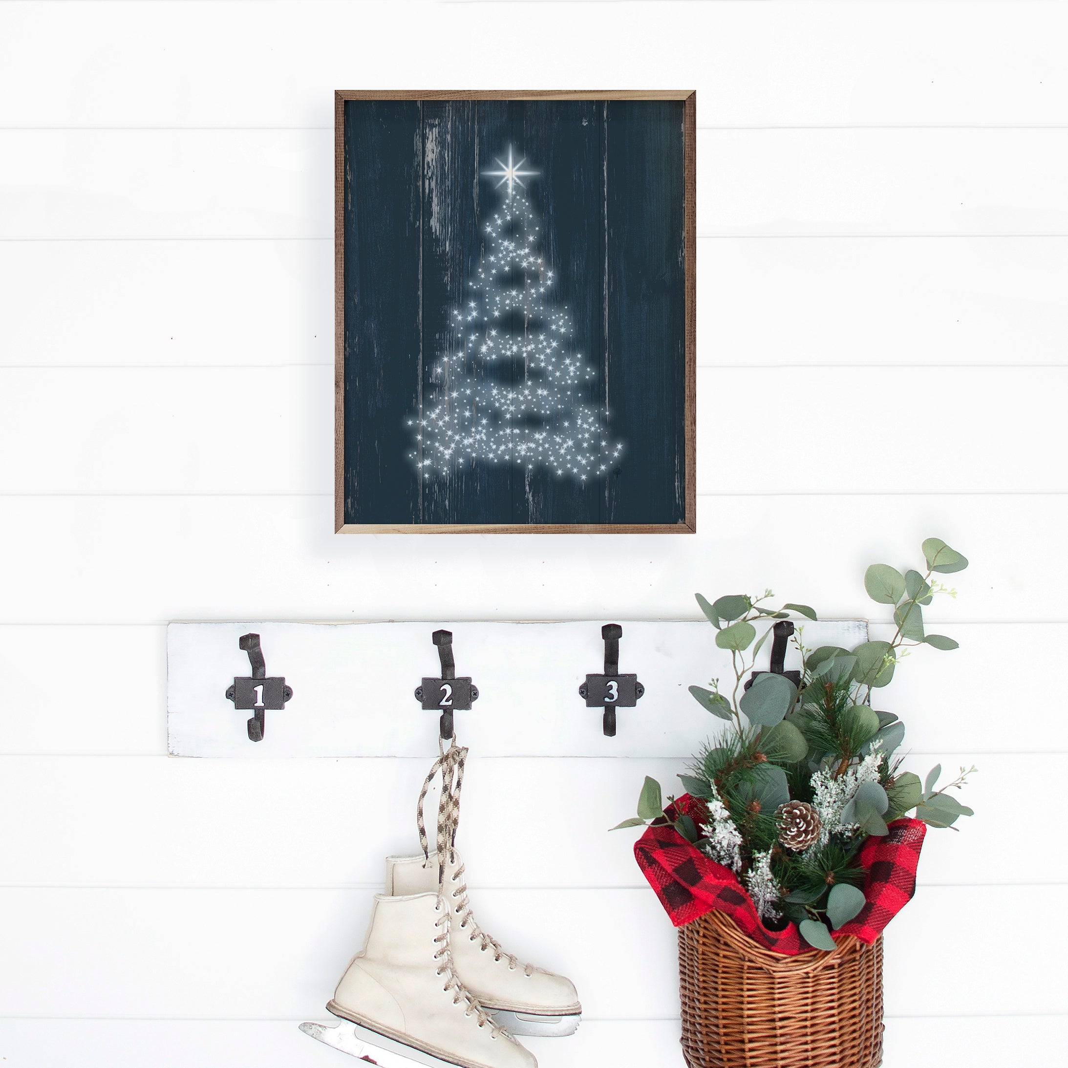 This unique piece is a simple way to bring beauty and charm to any wall or shelf within the home. It is made from high quality American hardwood planks with a hand painted face, and printed with UV cured ink, and is framed in a natural walnut frame. Each piece is unique with its own personality, marks, wood grain, and look. Easy to clean with a dry cloth.
