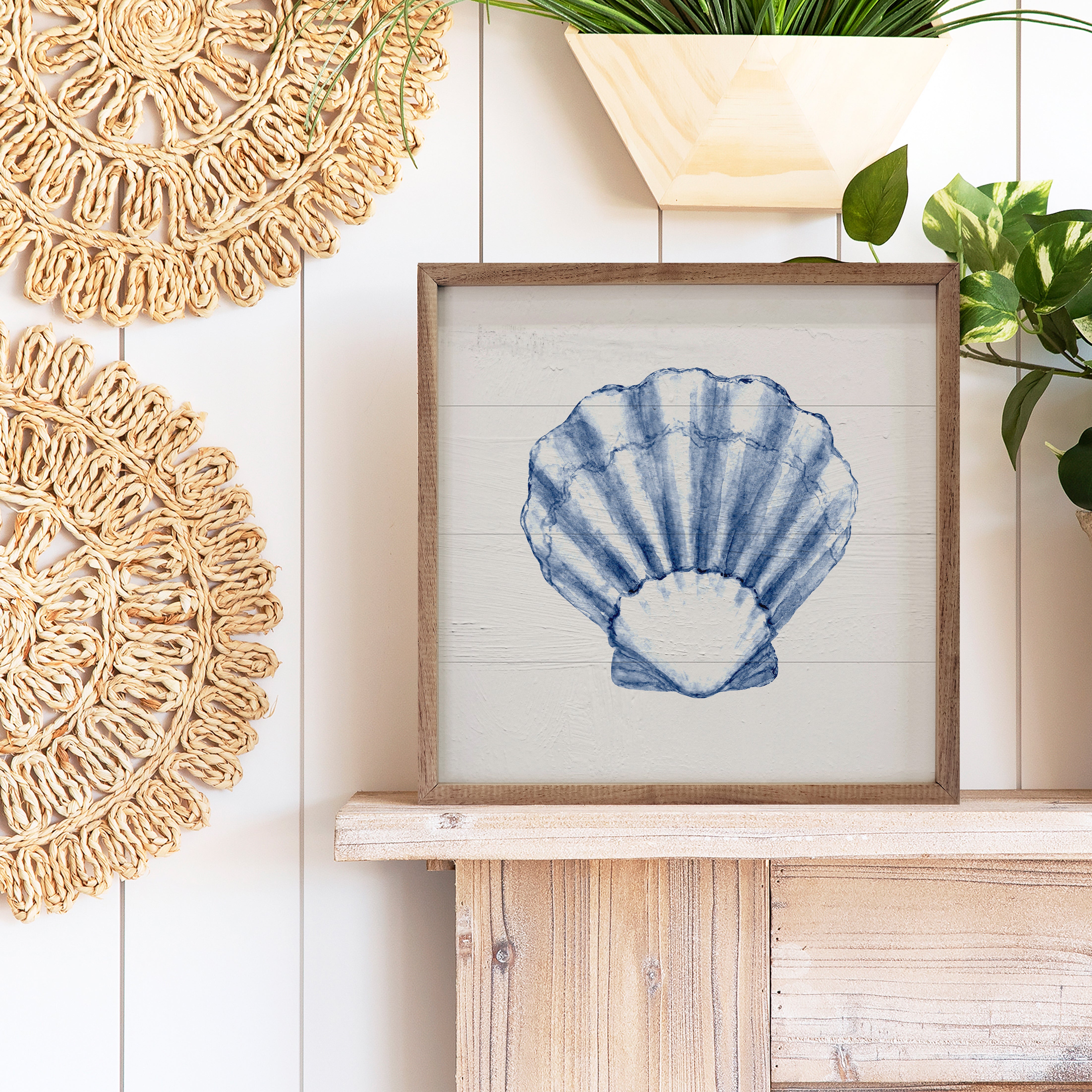 This unique piece is a simple way to bring beauty and charm to any wall or shelf within the home. It is made from high quality American hardwood planks with a hand painted face, and printed with UV cured ink, and is framed in a natural walnut frame. Each piece is unique with its own personality, marks, wood grain, and look. Easy to clean with a dry cloth.