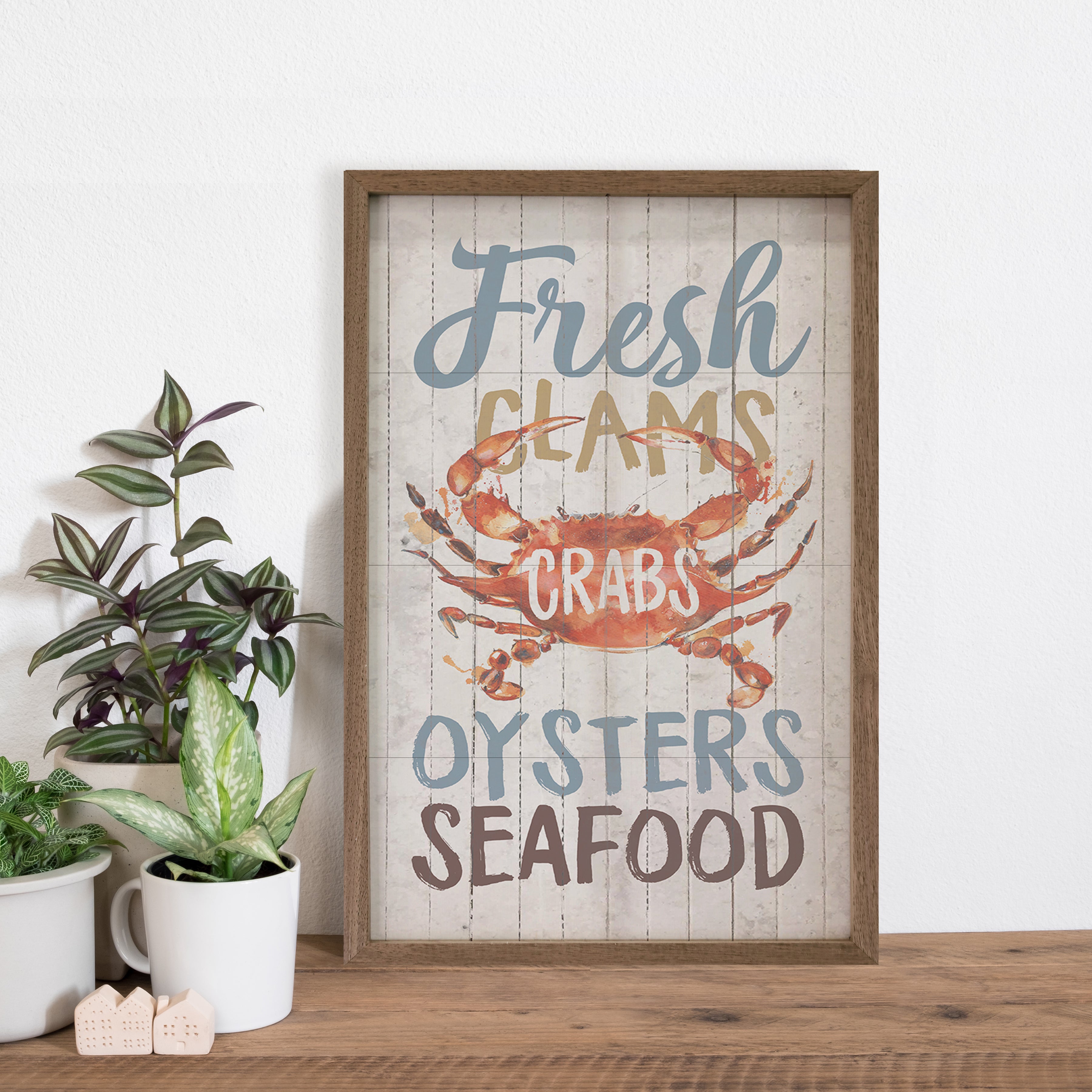 This unique piece is a simple way to bring beauty and charm to any wall or shelf within the home. It is made from high quality American hardwood planks with a hand painted face, and printed with UV cured ink, and is framed in a natural walnut frame. Each piece is unique with its own personality, marks, wood grain, and look. Easy to clean with a dry cloth.