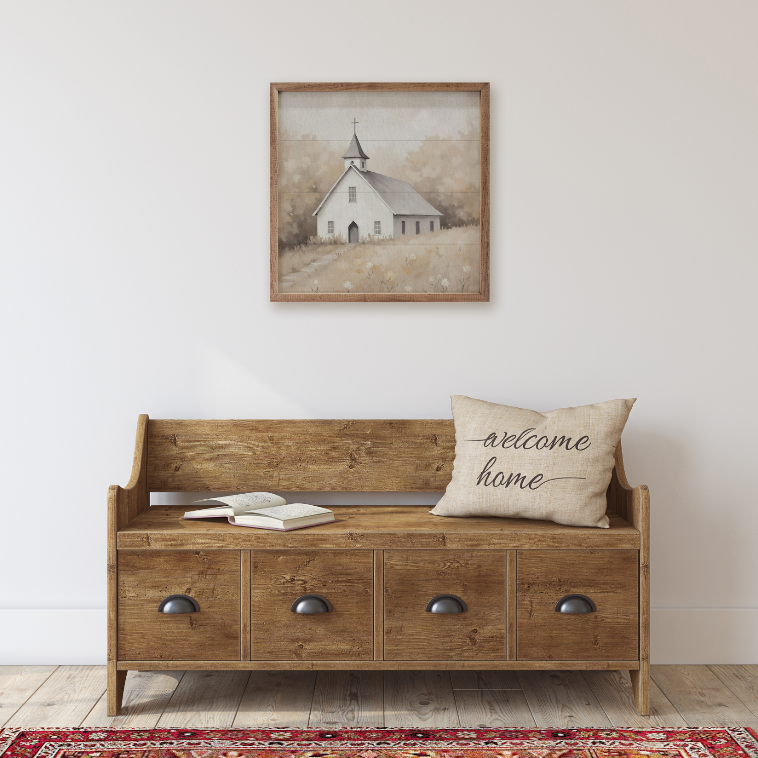 Featuring a solid wood insert with intricate, faith-inspired designs, this piece is framed in rich walnut to highlight the natural wood grain. With its elegant craftsmanship and meaningful detail, it’s a beautiful addition to any home décor collection, offering timeless style and quality.