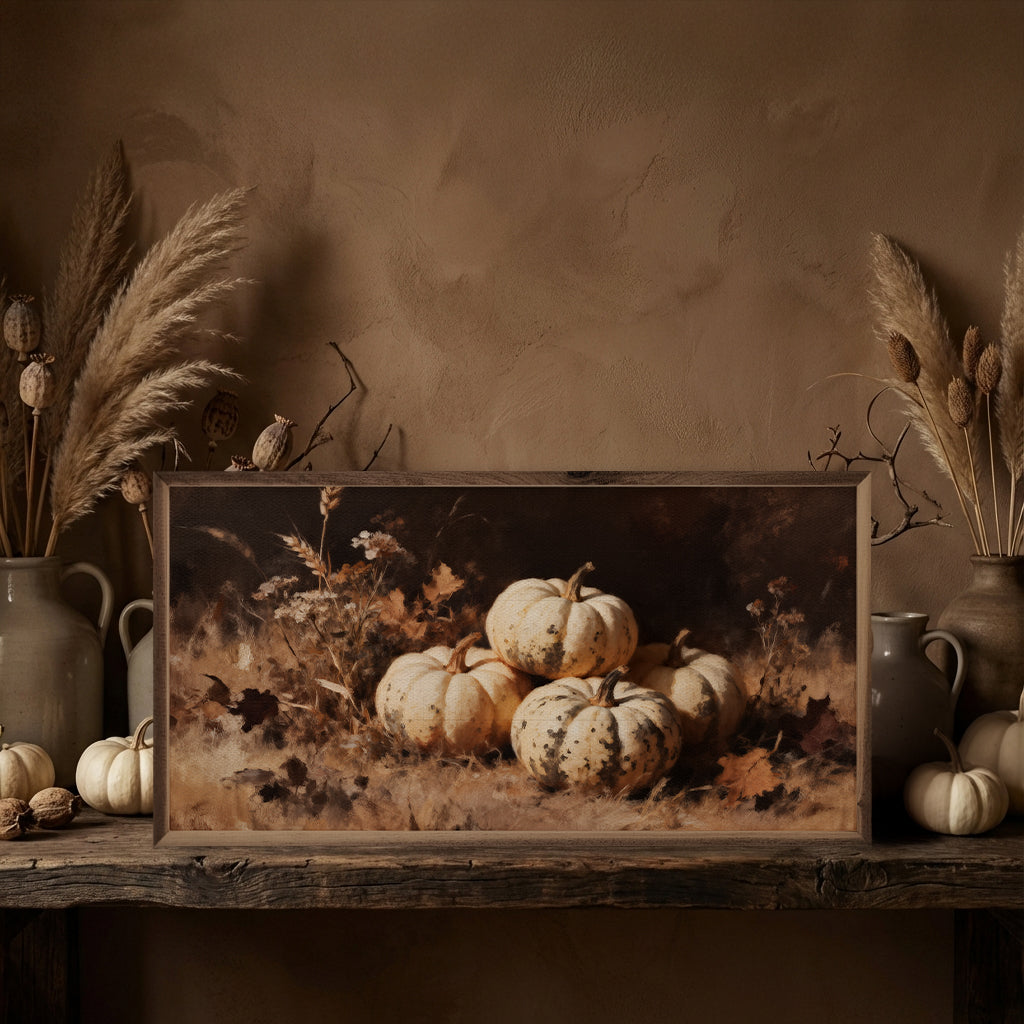 Four White Pumpkins One Speckled