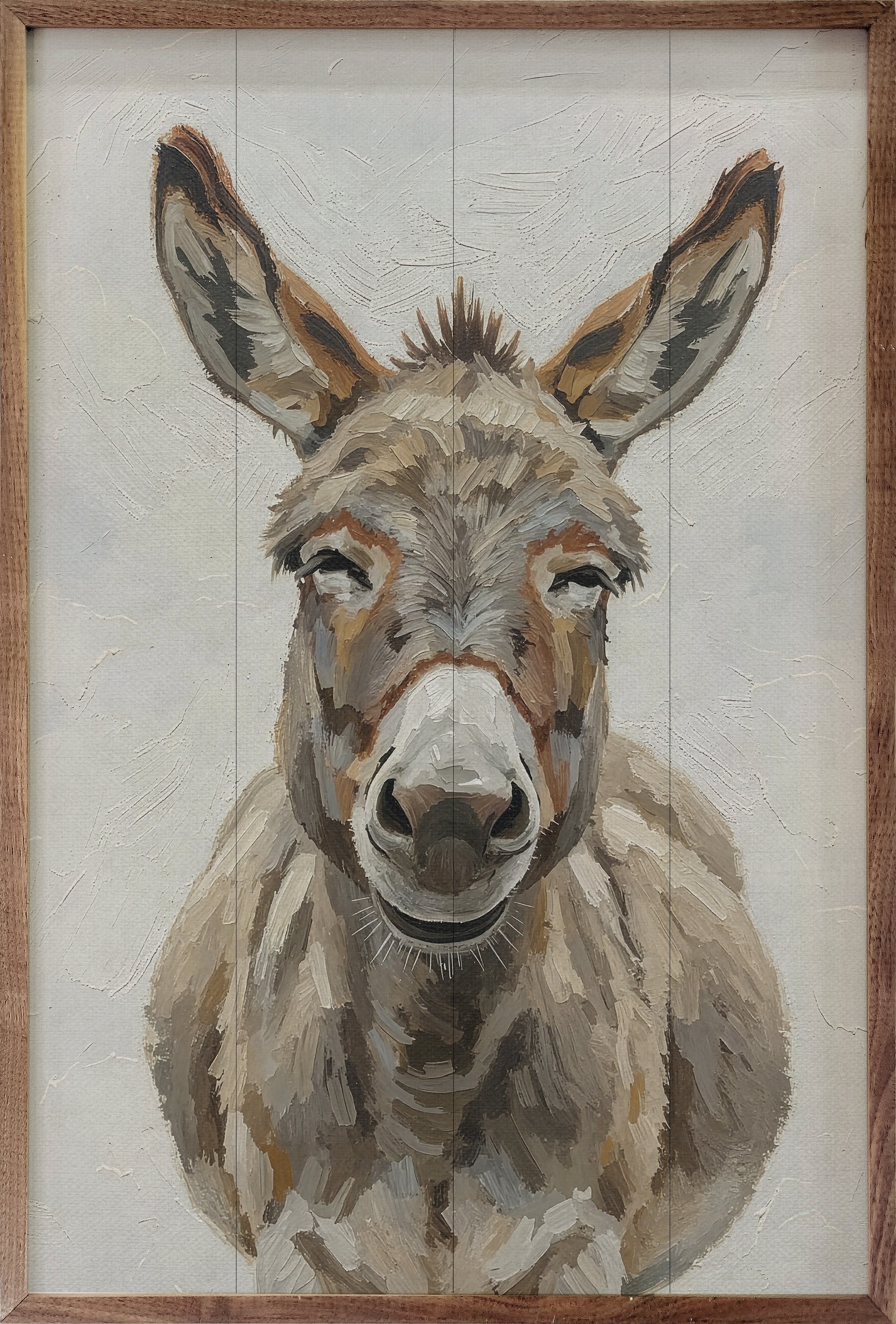 Featuring a solid wood insert with intricate, rustic farm-inspired designs, this piece is framed in rich walnut to showcase the natural wood grain. Its charming craftsmanship and down-to-earth appeal make it a perfect addition to any farmhouse décor, offering timeless style and quality.