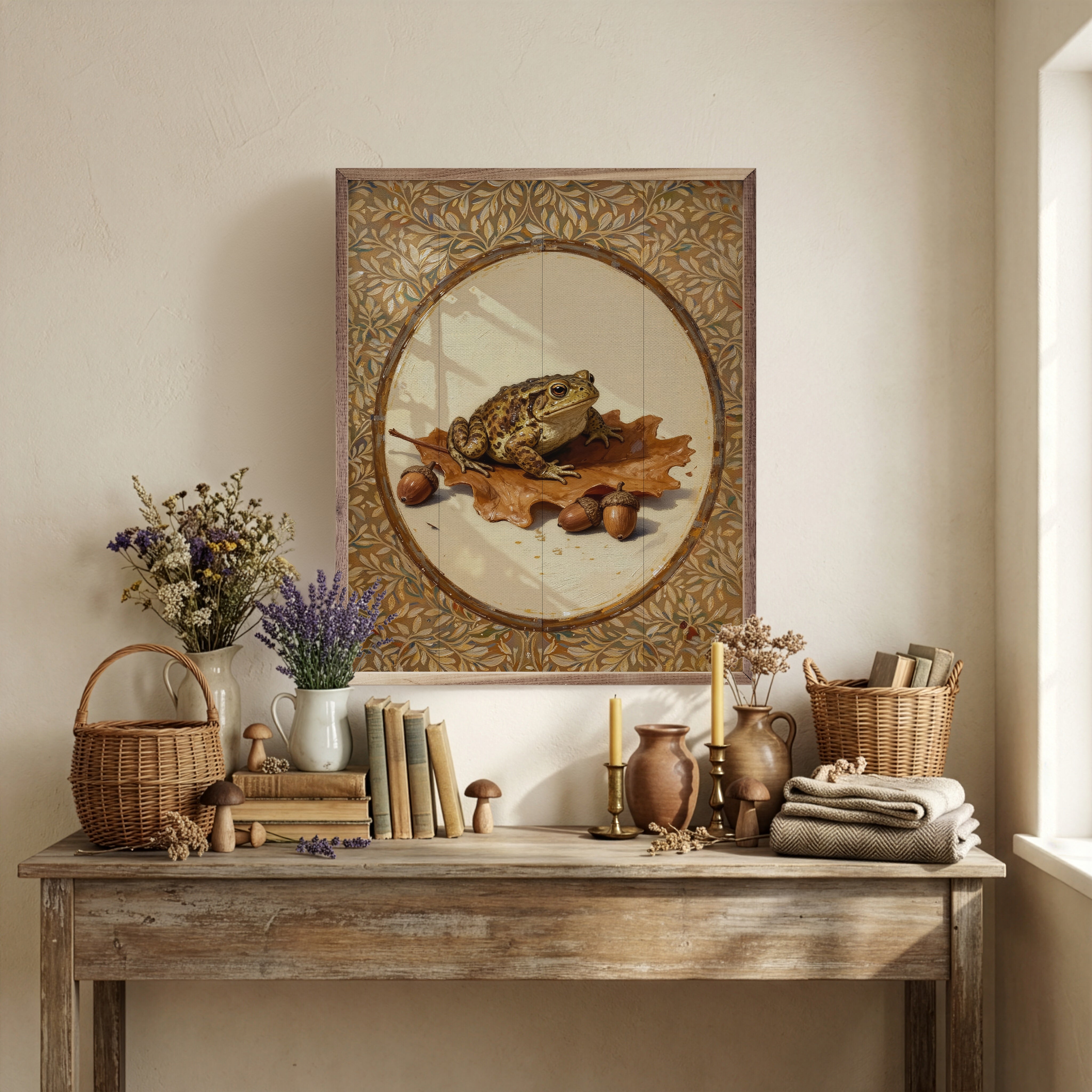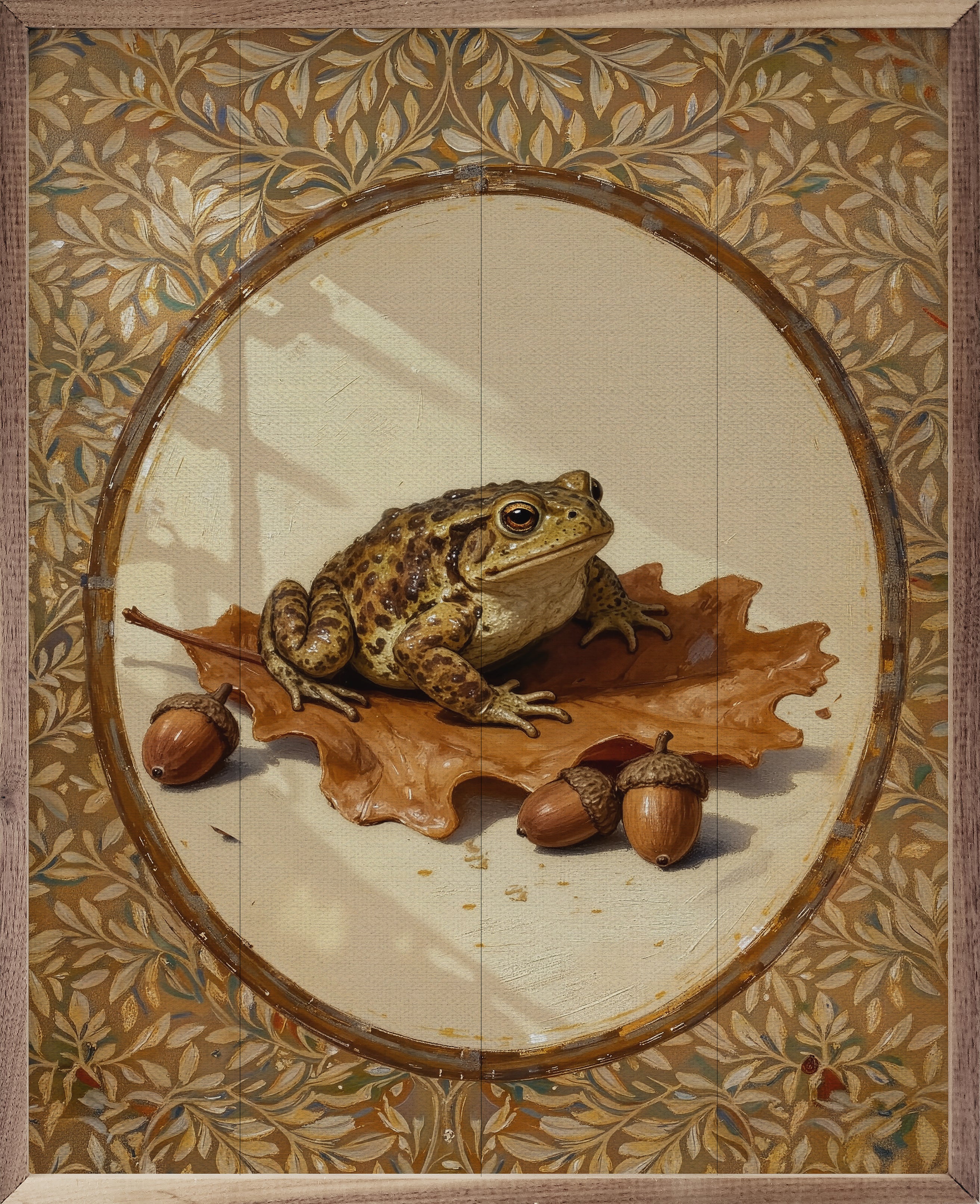 Toad On Oak Leaf Looking Right