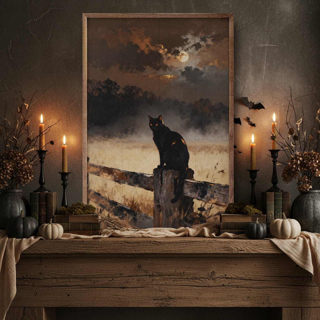 Black Cat On Fence - 5x8 is backordered and will ship as soon as it is back in stock.