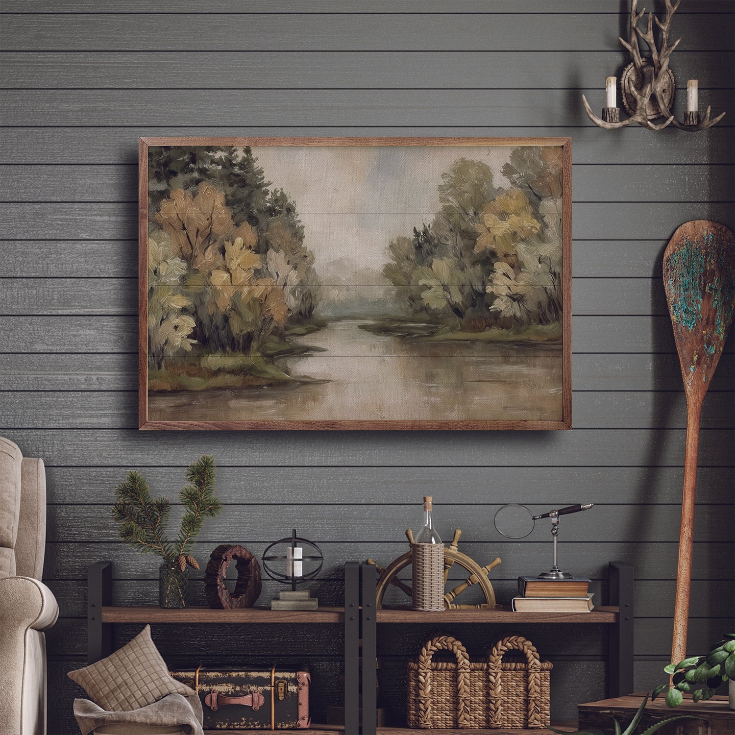 Immerse your home in the peaceful beauty of lakes and rivers with our Kendrick Home walnut-framed art collection. Showcasing graceful designs inspired by shimmering waters and flowing currents, each piece is thoughtfully crafted and framed in rich walnut for a warm, rustic elegance. Ideal for bringing the calming spirit of the great outdoors into any room.