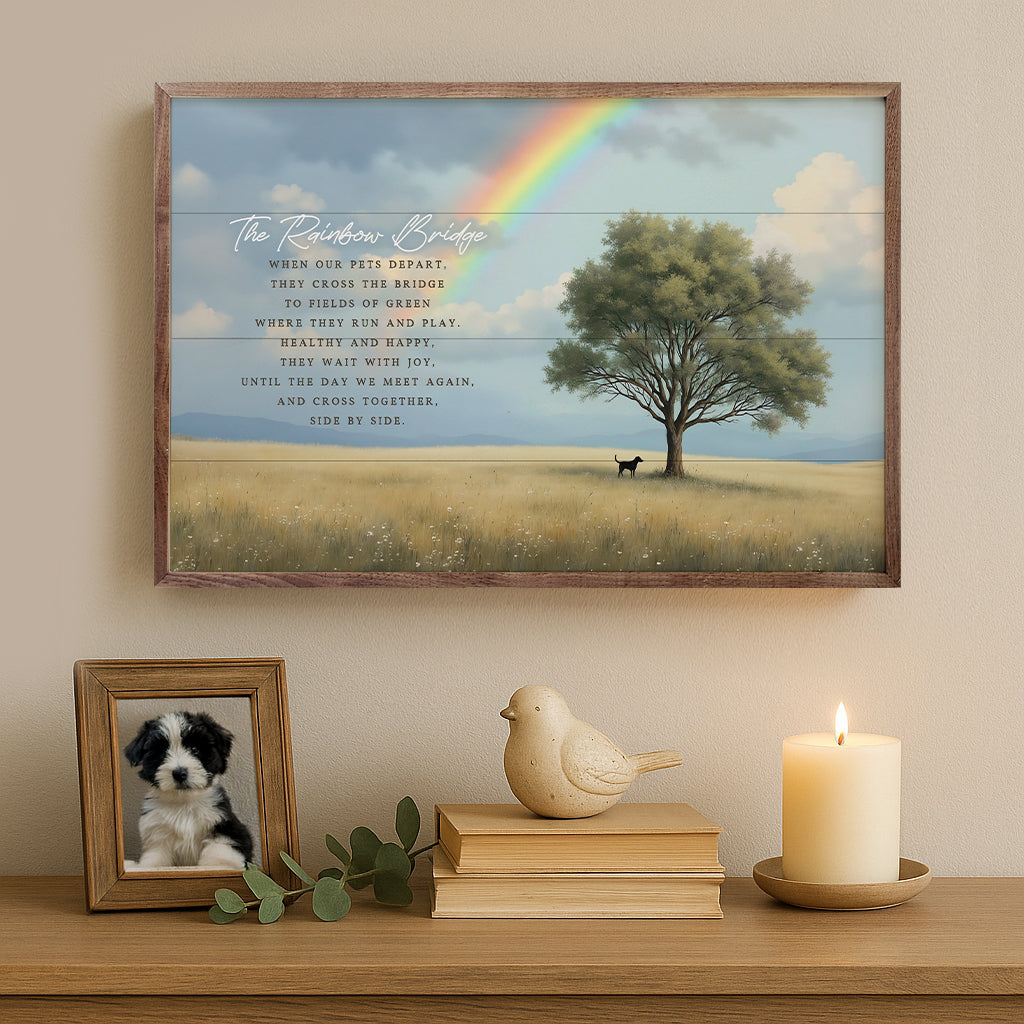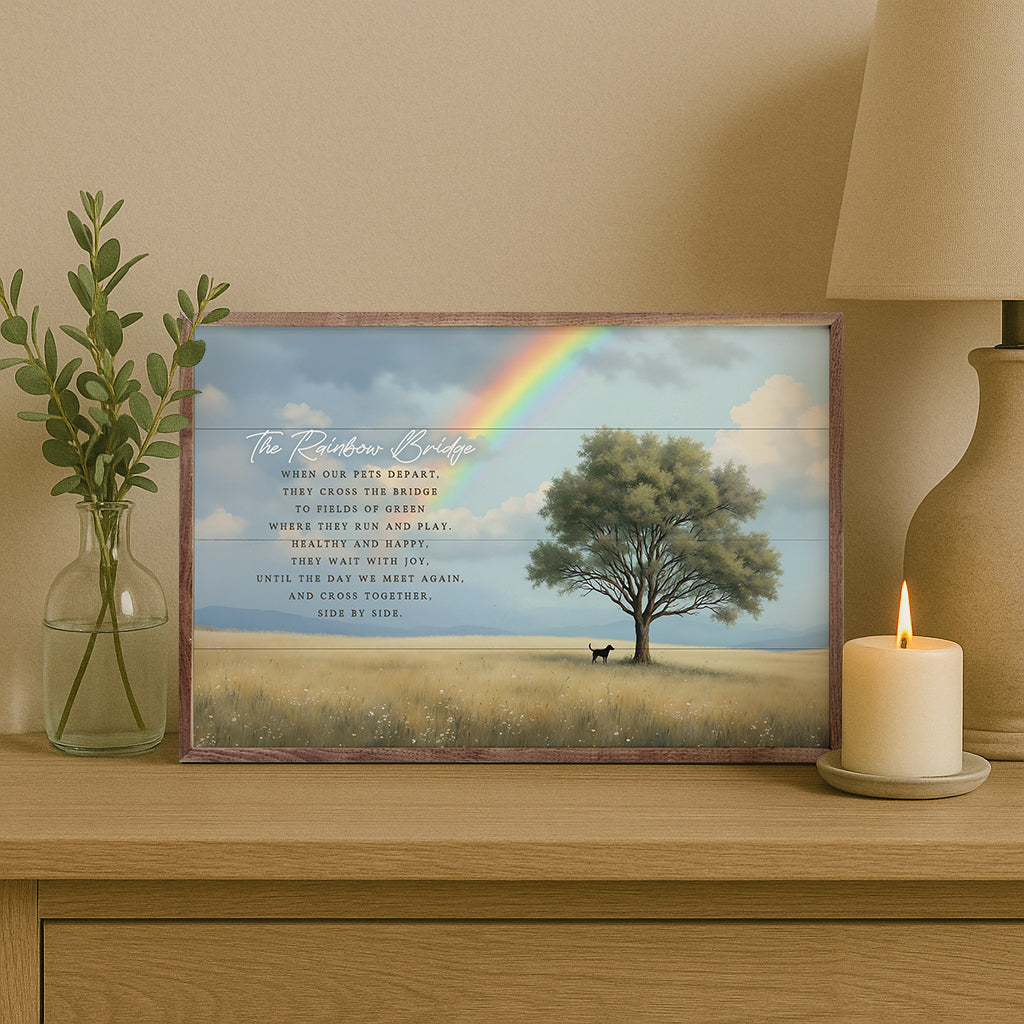 Honor cherished memories with the timeless beauty of our Kendrick Home walnut-framed memorial art collection. Thoughtfully designed to celebrate love, remembrance, and enduring connection, each piece features heartfelt expressions framed in rich walnut for a warm, rustic elegance. A meaningful addition to any space, these pieces offer comfort and serenity while keeping the spirit of loved ones close.