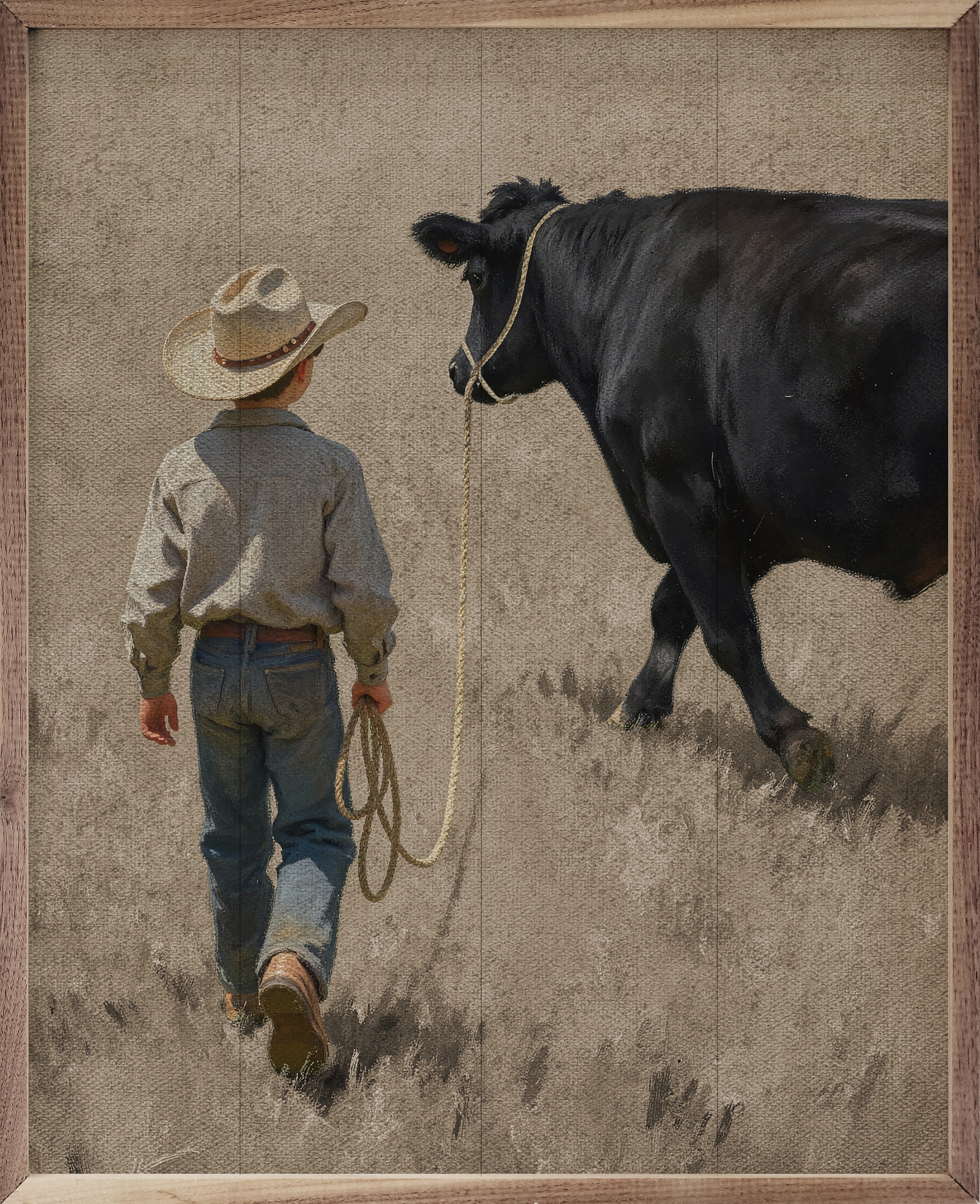 A Boy And His Beef Cow Walking