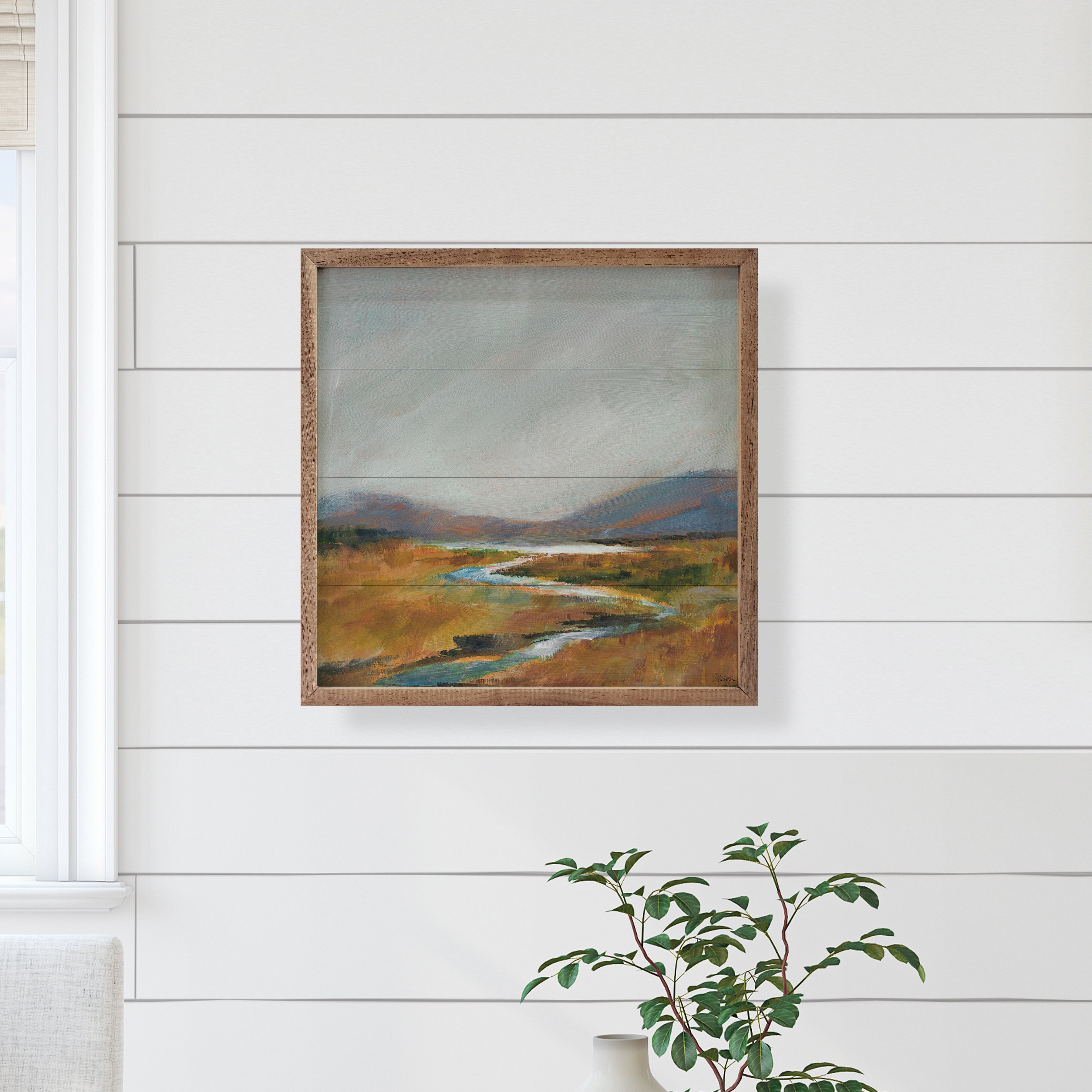 Art, 6x16work by Art, 6x16ist Sue Schlabach makes this beautiful unique piece a simple way to bring beauty and charm to any wall or shelf within the home. It is made from high quality American hardwood planks with a hand painted face, and printed with UV cured ink, and is framed in a natural walnut frame. Each piece is unique with its own personality, marks, wood grain, and look. Easy to clean with a dry cloth.