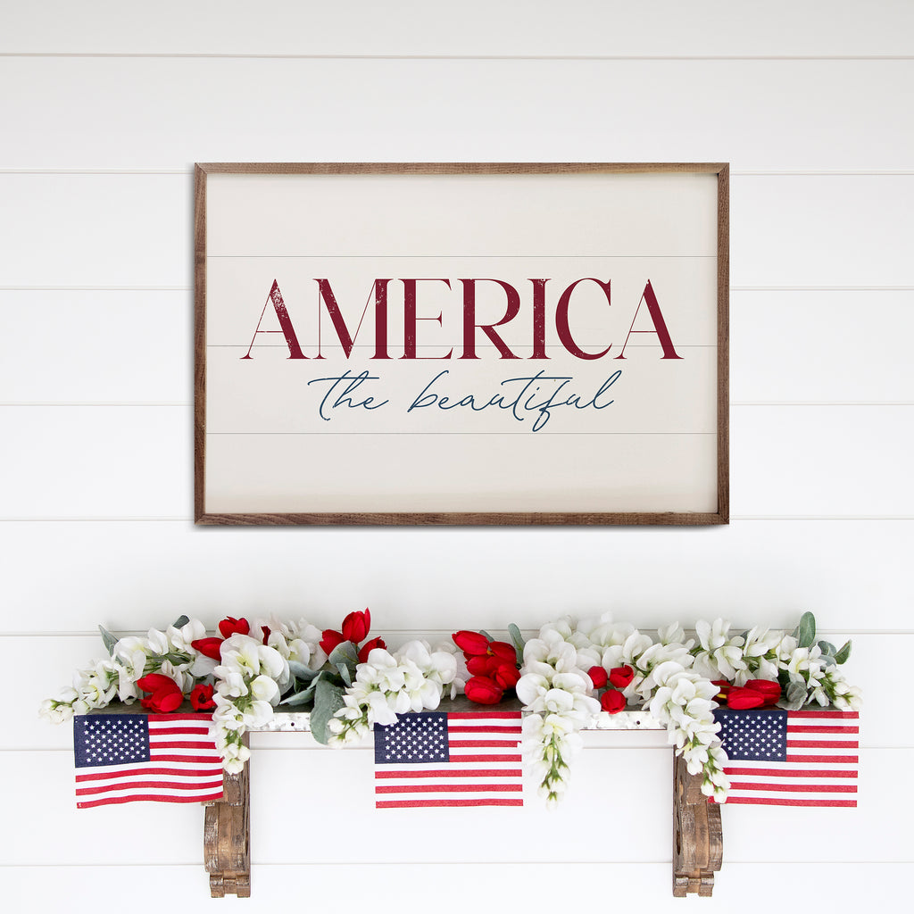 Capture the essence of Americana with our walnut-framed wood prints, celebrating American-made quality and timeless patriotic charm—perfect for retail spaces that inspire.