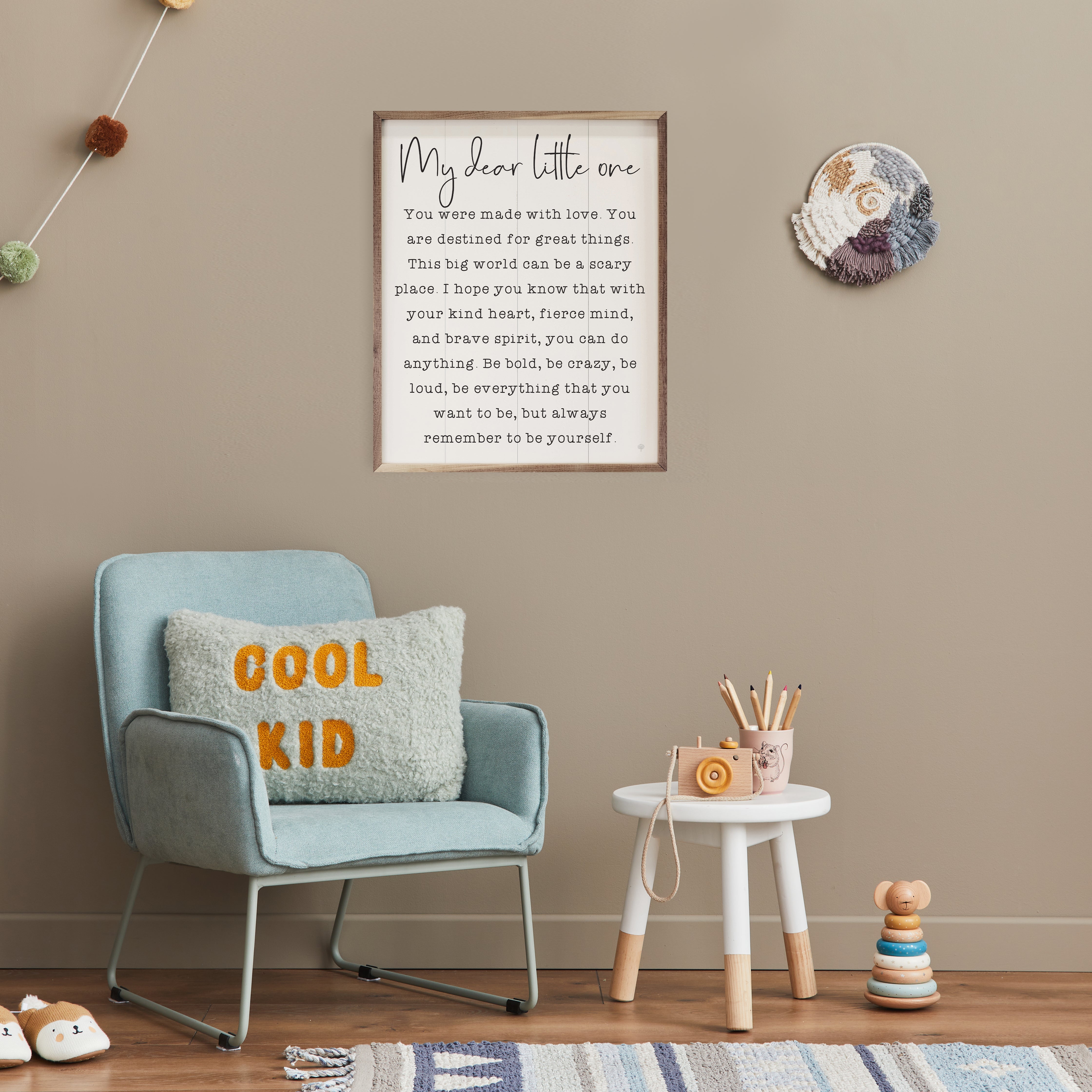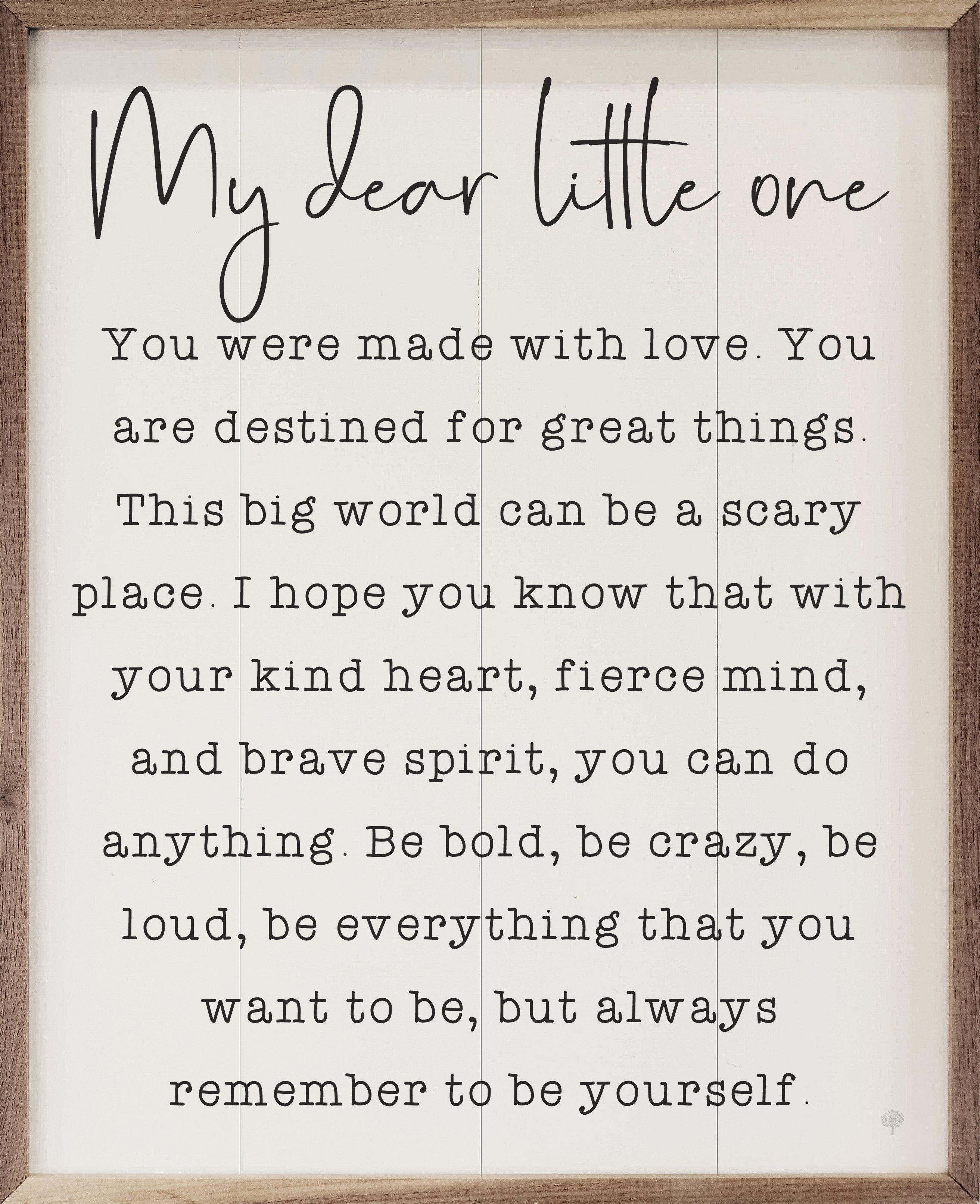 This unique piece is a simple way to bring beauty and charm to any wall or shelf within the home. It is made from high quality American hardwood planks with a hand painted face, and printed with UV cured ink, and is framed in a natural walnut frame. Each piece is unique with its own personality, marks, wood grain, and look. Easy to clean with a dry cloth.