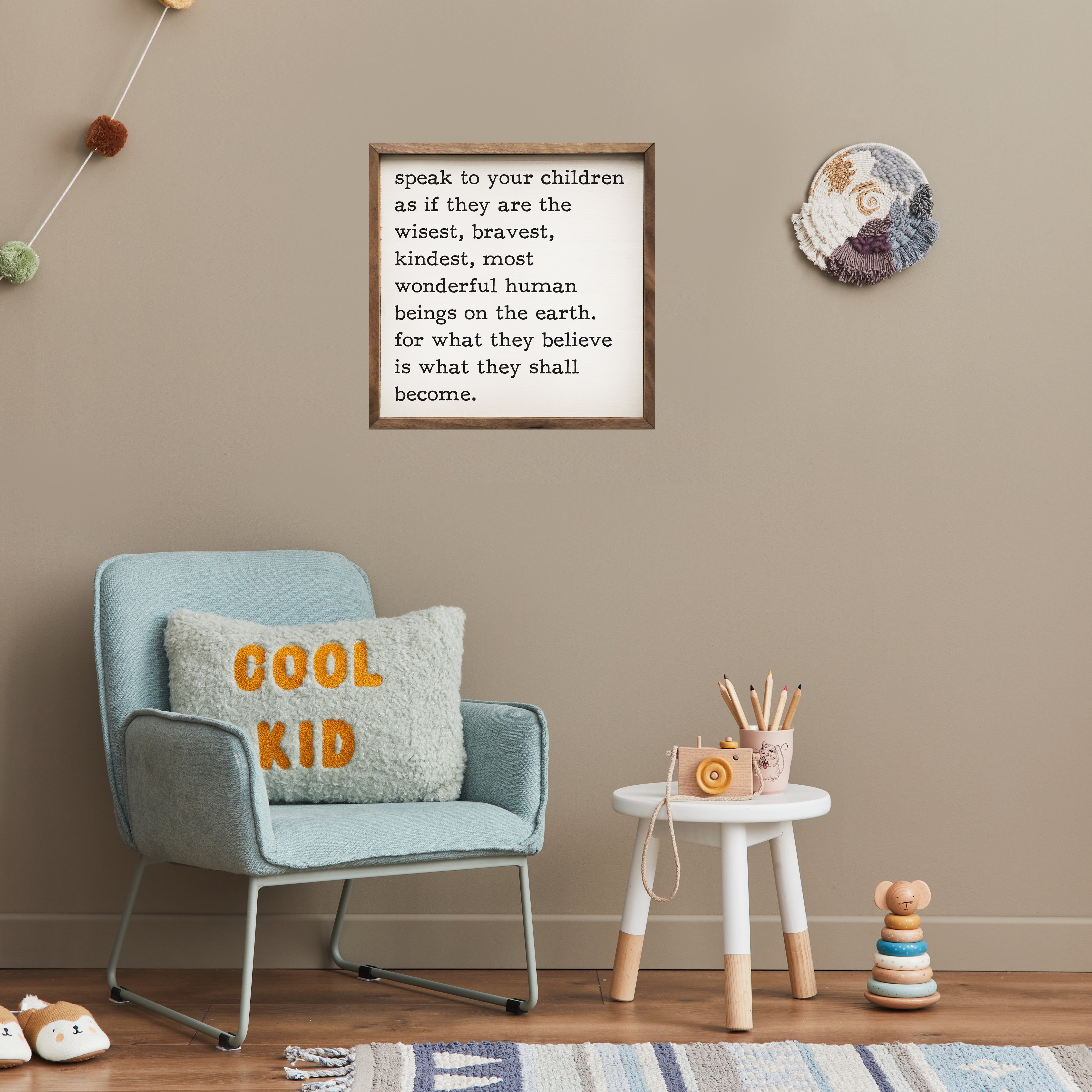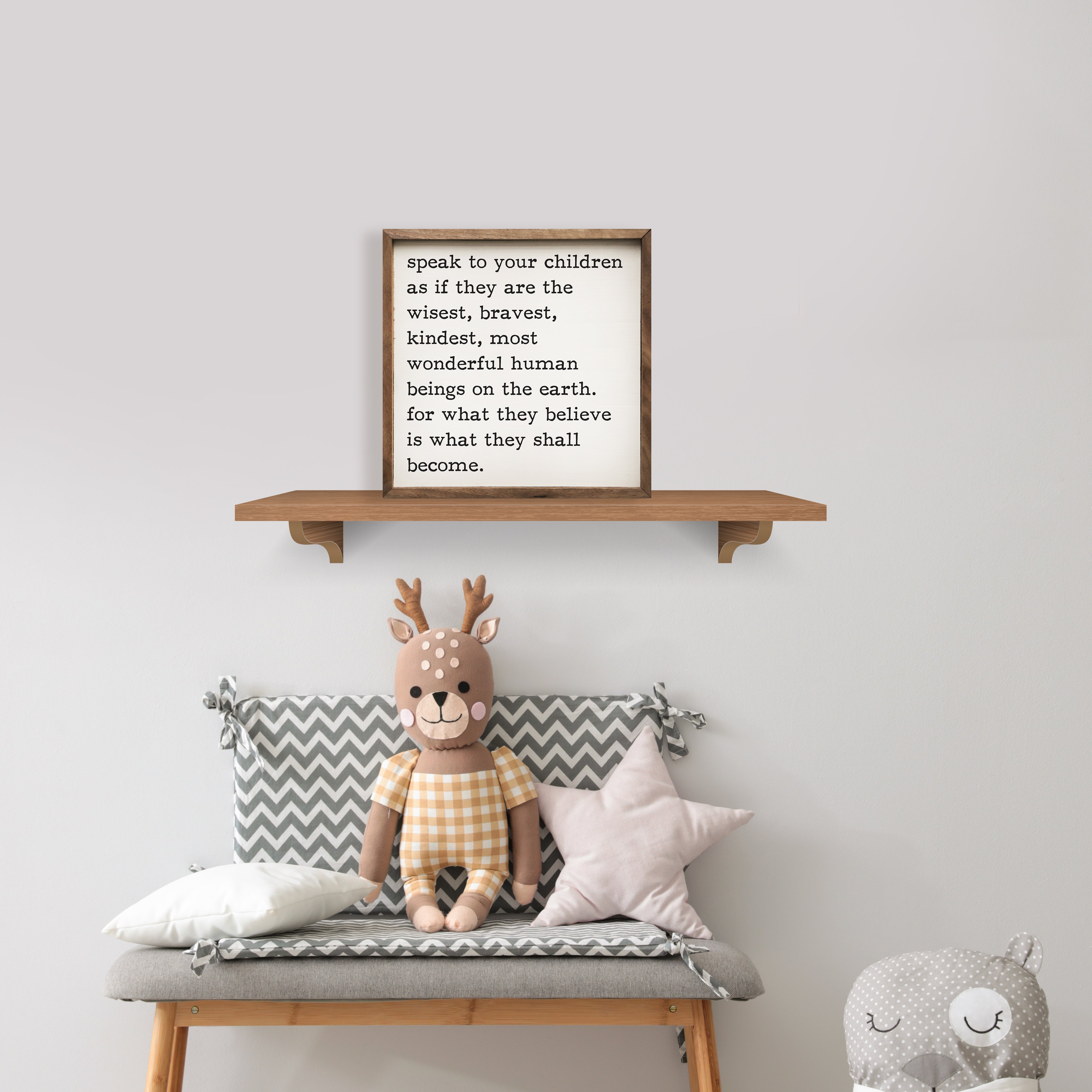 This unique piece is a simple way to bring beauty and charm to any wall or shelf within the home. It is made from high quality American hardwood planks with a hand painted face, and printed with UV cured ink, and is framed in a natural walnut frame. Each piece is unique with its own personality, marks, wood grain, and look. Easy to clean with a dry cloth.