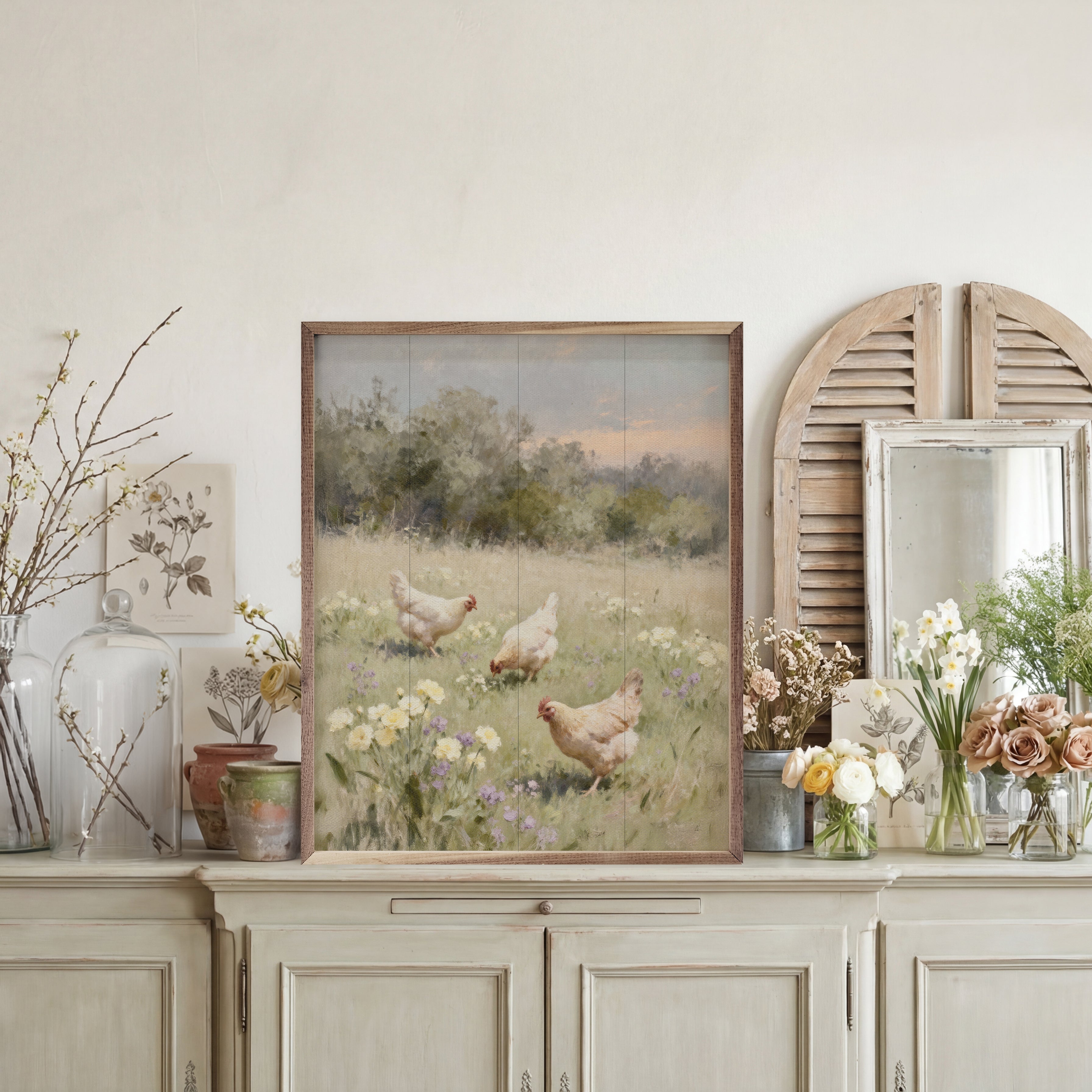 Chickens Playing In Pasture - 8x10 is backordered and will ship as soon as it is back in stock.