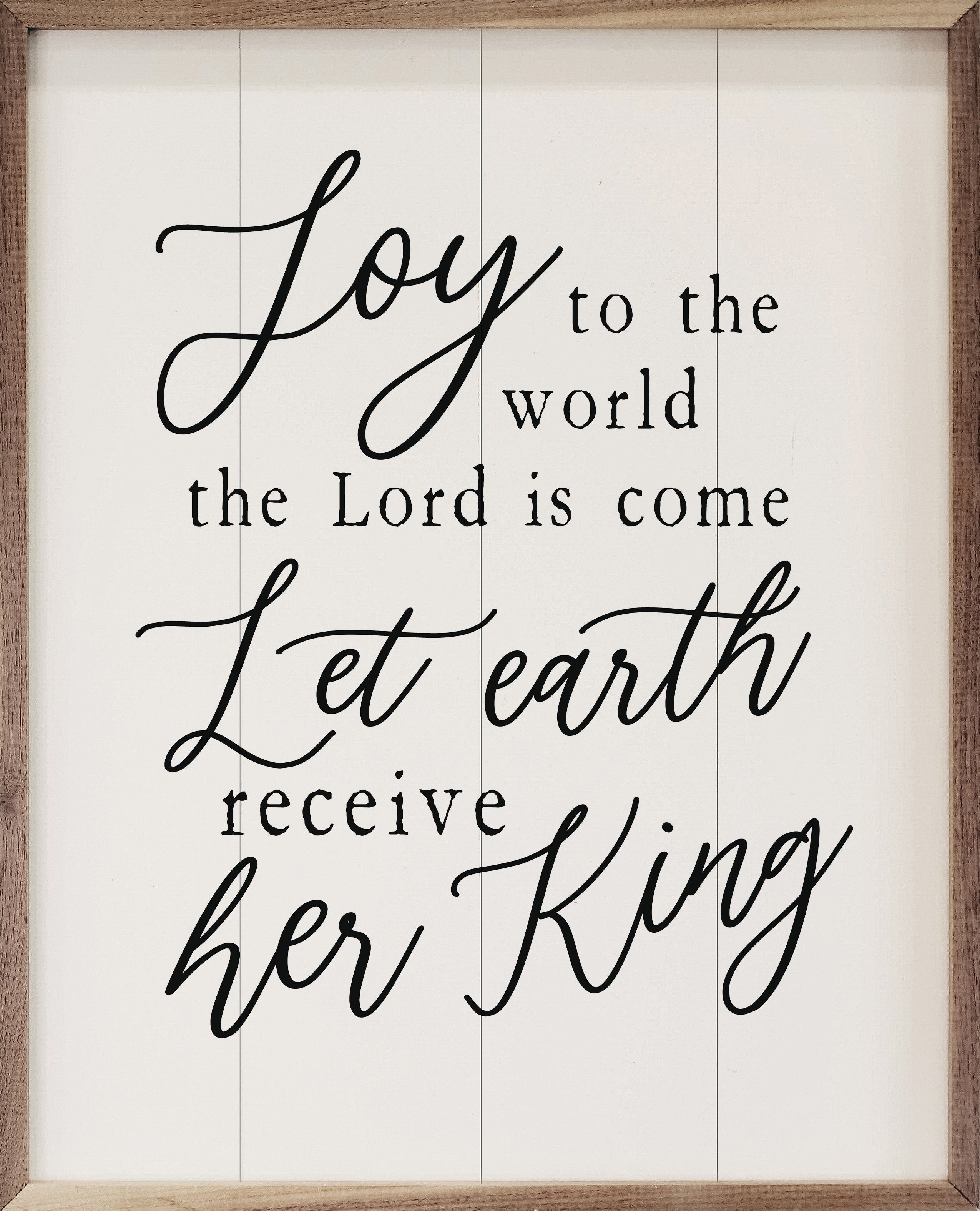 This unique piece is a simple way to bring beauty and charm to any wall or shelf within the home. It is made from high quality American hardwood planks with a hand painted face, and printed with UV cured ink, and is framed in a natural walnut frame. Each piece is unique with its own personality, marks, wood grain, and look. Easy to clean with a dry cloth.