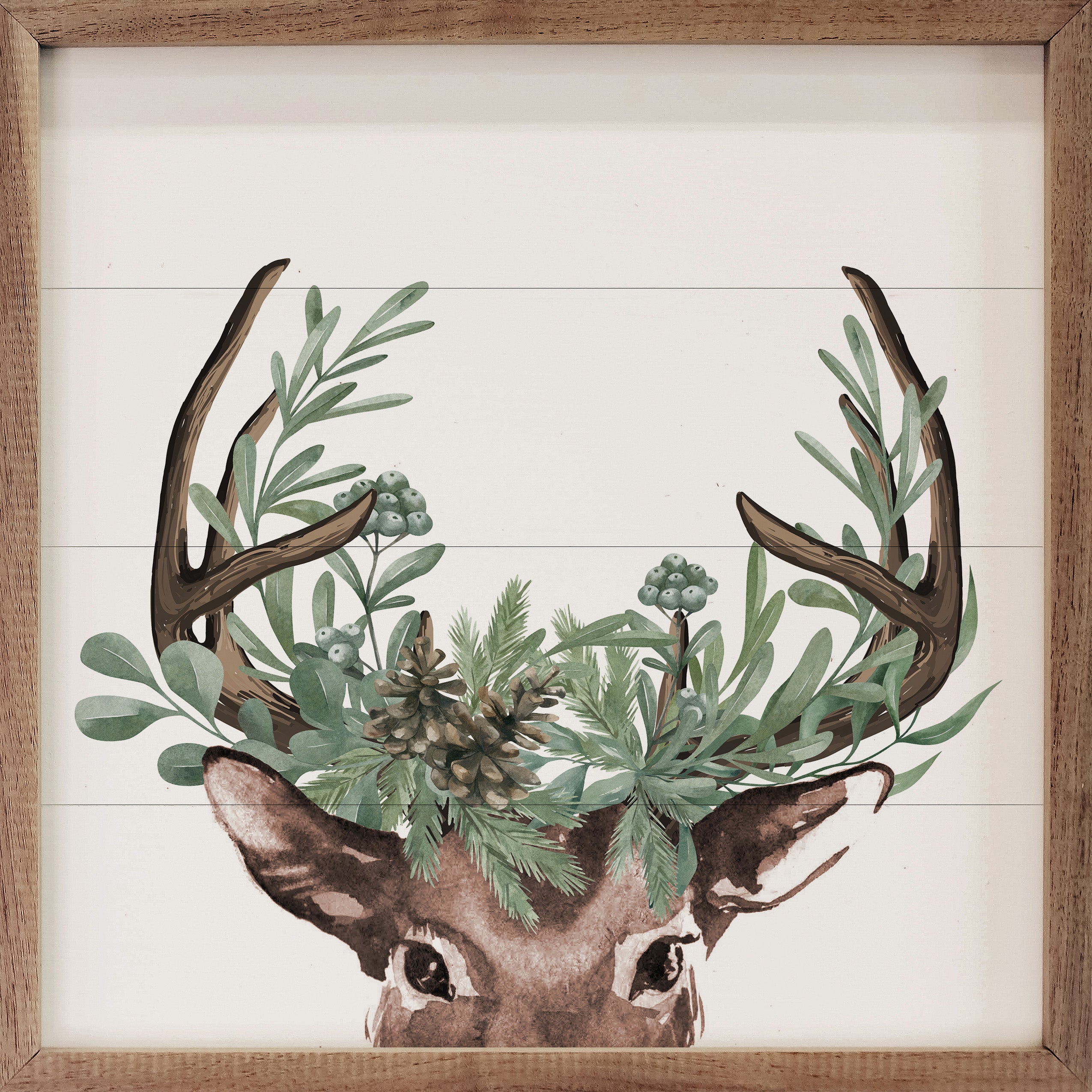 This unique piece is a simple way to bring beauty and charm to any wall or shelf within the home. It is made from high quality American hardwood planks with a hand painted face, and printed with UV cured ink, and is framed in a natural walnut frame. Each piece is unique with its own personality, marks, wood grain, and look. Easy to clean with a dry cloth.